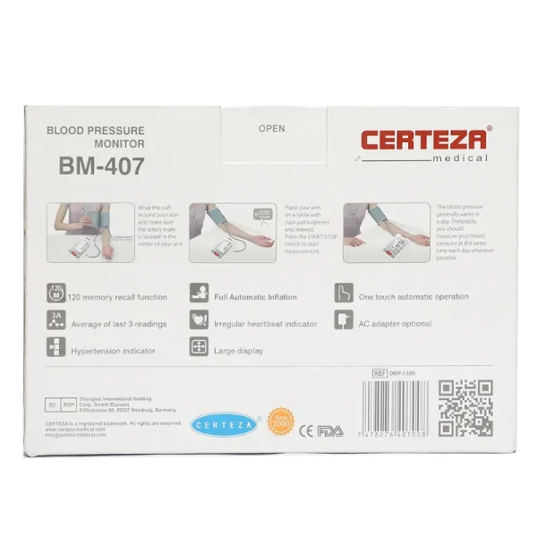 Certeza Digital Arm Blood Pressure Monitor-BM407. CERTEZA Medical is a leading company in medical equipment’s for health monitoring and therapy. The range of products includes nebulizers, blood glucose monitors, blood pressure monitors, digital fever thermometers and many more. Committed to offer the best in healthcare equipment’s to help you build a healthy lifestyle.