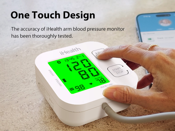 - One-touch automatic sync via Bluetooth technology with free iHealth MyVitals app